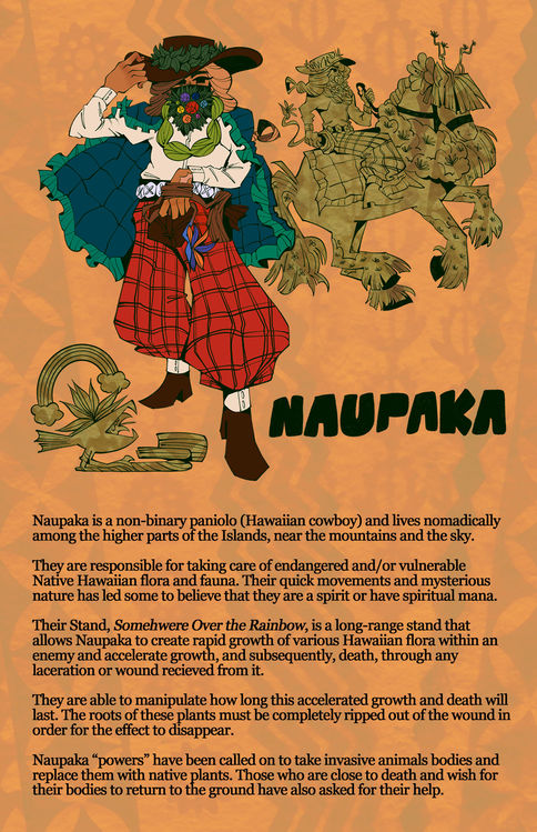 *As per Jojo's Bizarre Adventure fashion, some characters names are inspired by real people, and all of their Stands are named after songs or artists-- in this case, local, Hawaiian ones.